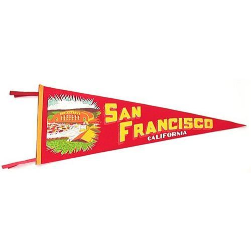 1950s SAN FRANSICO CALIFORNIA Felt Pennant, 29" long, color shipped may be different than picture as we have several of these in stock