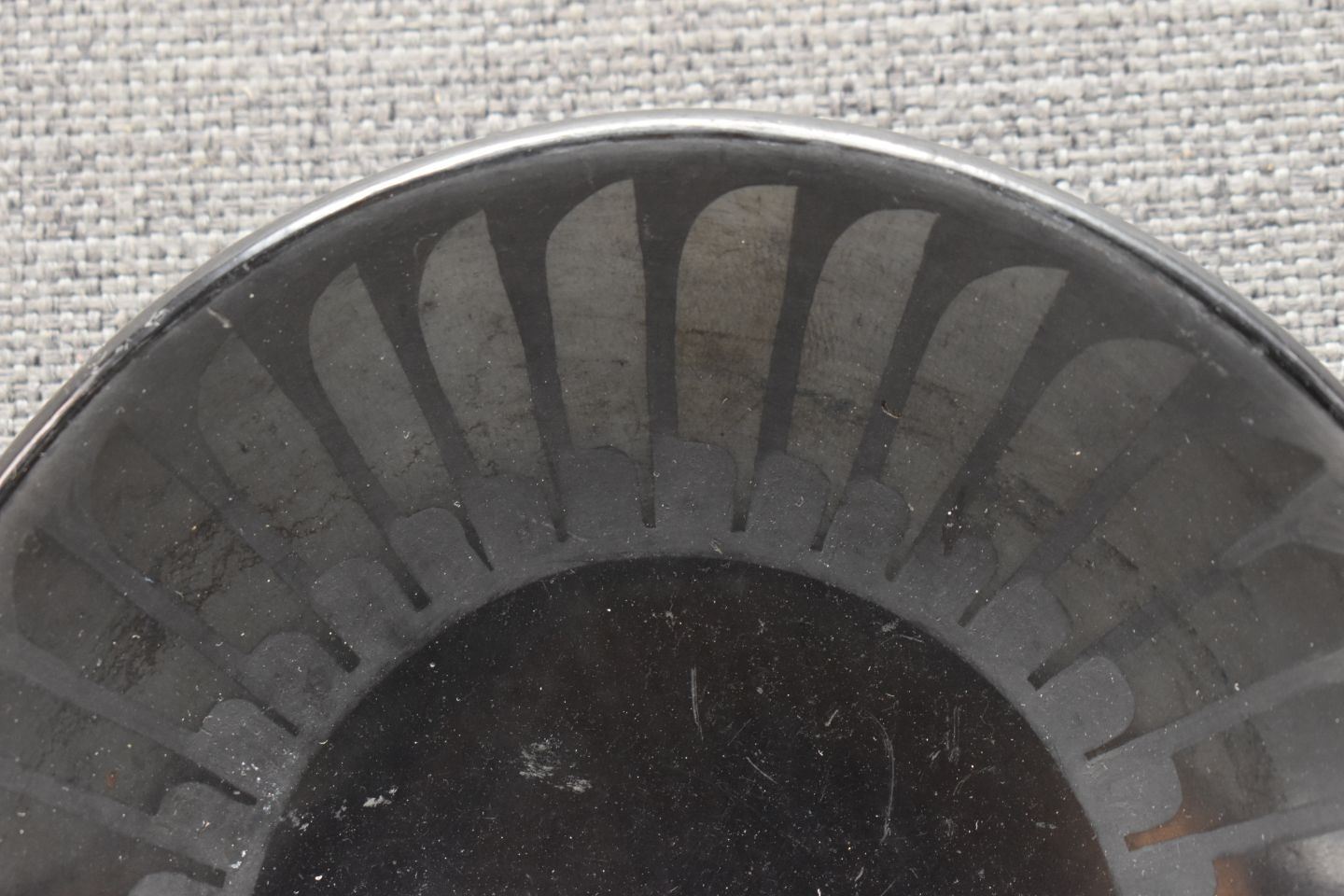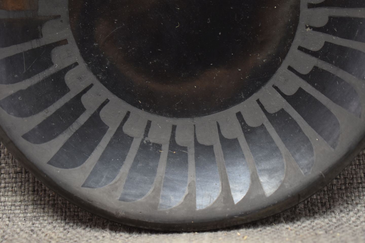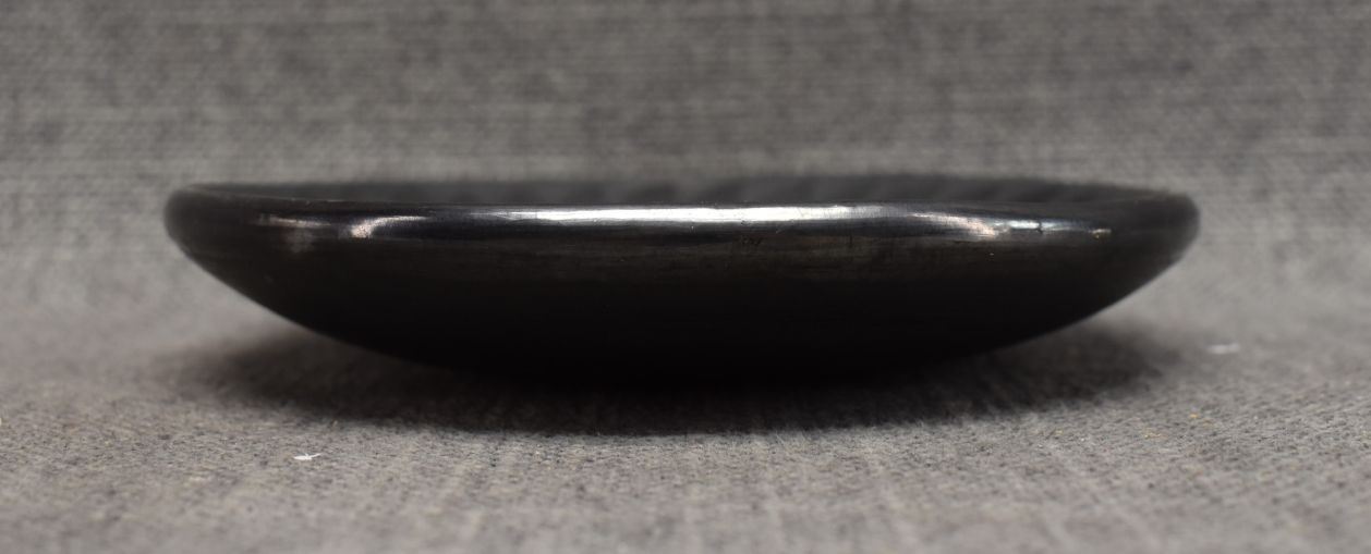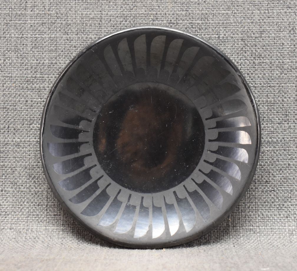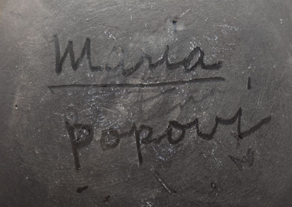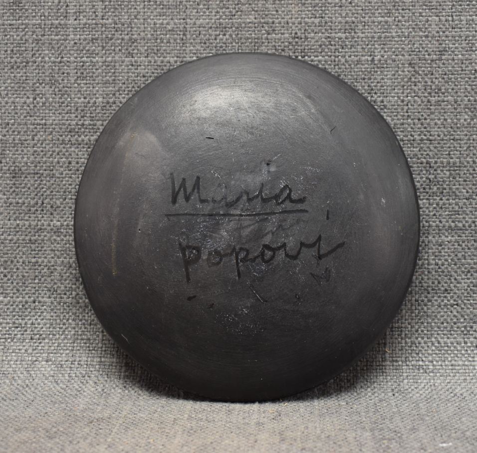 1960s SAN ILDEFONSO matte on black feather design with minor scratches signed Maria Popovi, 6" diameter
