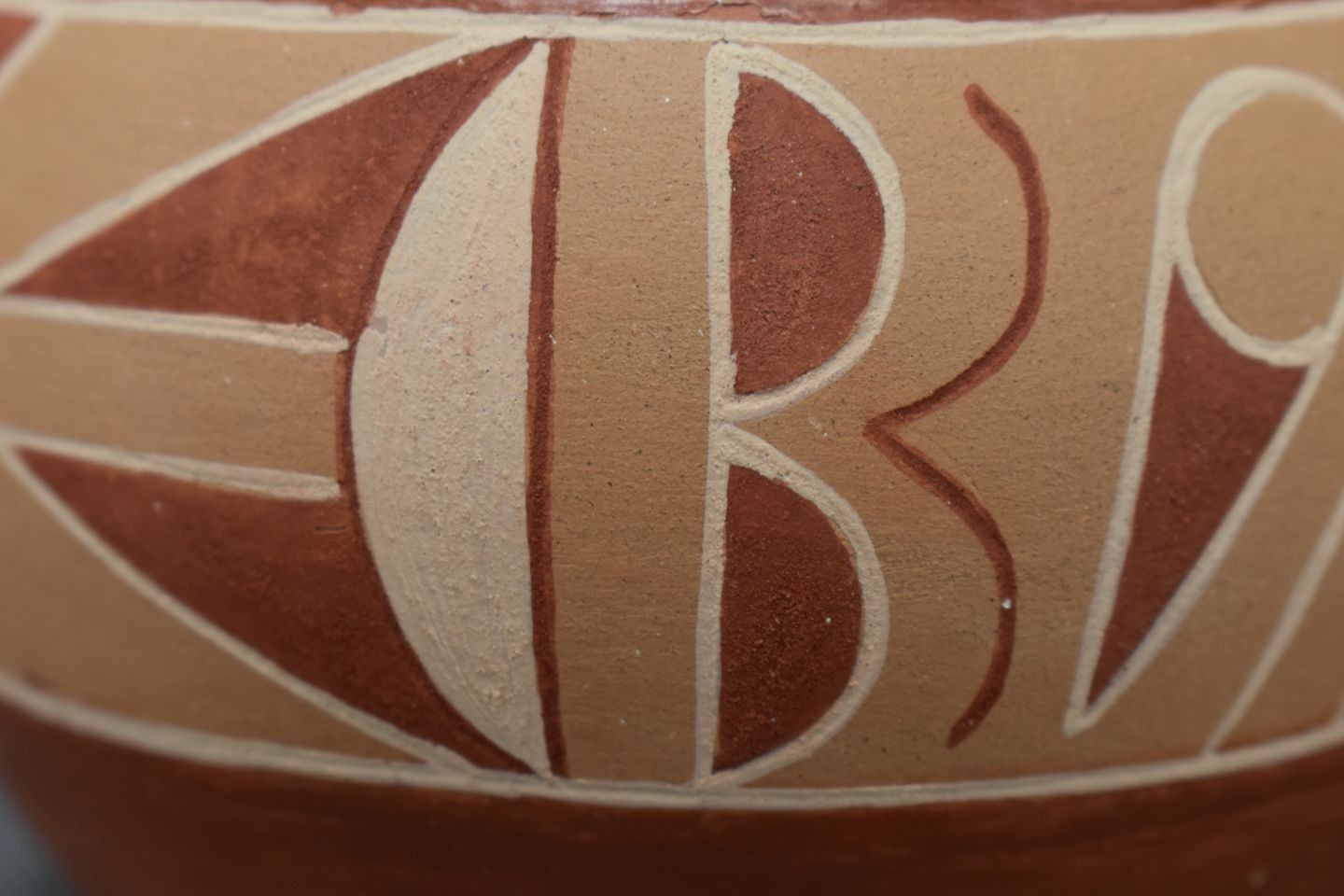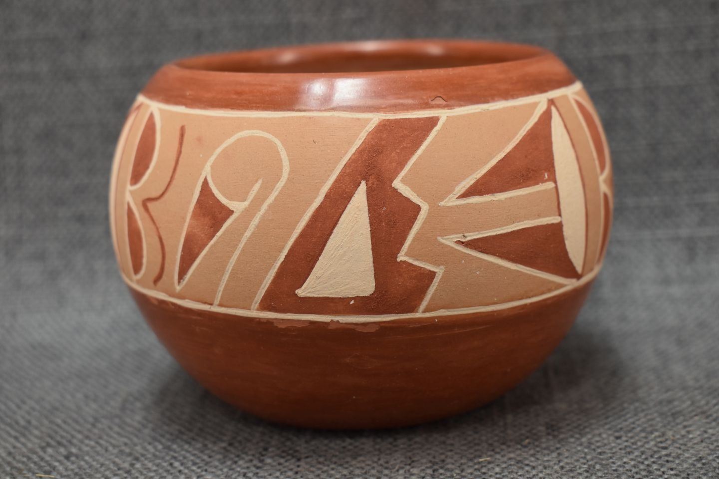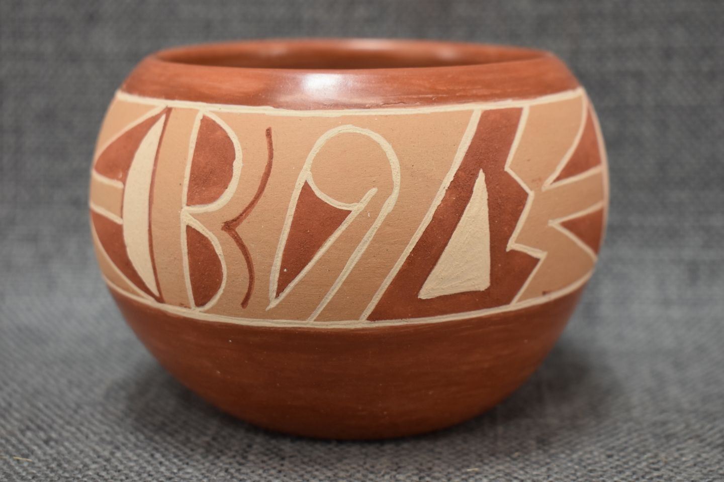 1970-80's San Juan Indian hand coiled and polychrome painted design signed Rosita Cata 3.5" x 4.5"