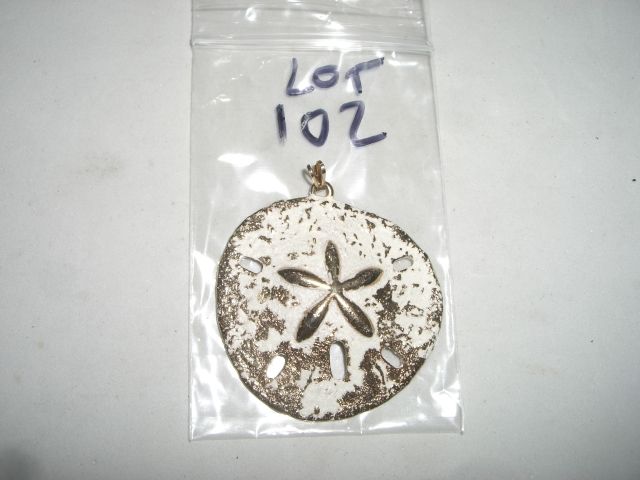SAND DOLLAR LARGE PENDANT WITH WHITE ENAMEL & GOLD COLORED OBVERSE/REVERSE!! PENDANT CAME OUT OF SAFE!! ***Coin, Currency & All Items Listed in this auction - Grades, Conditions and Values are not Safe Deposit Coins LLC Responsibilty. Grades, Condition and Values are determined by Consigner(s) & Buyers ONLY***