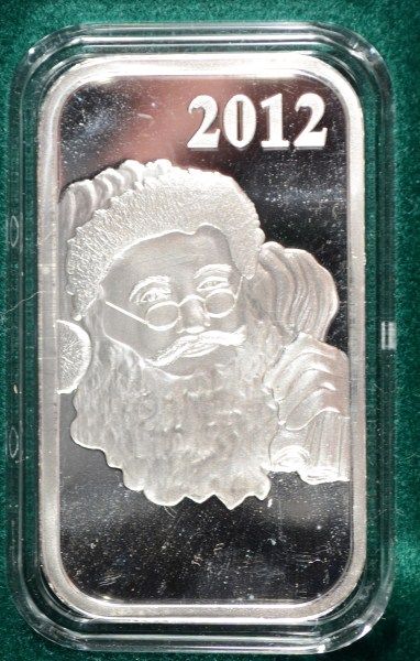 SANTA ON A HIGH QUALITY ART BAR WITH PLASTIC CAPSULE AND RED GIFT BOX MAKES THE PERFECT GIFT, EST. $60.00 TO $65.00