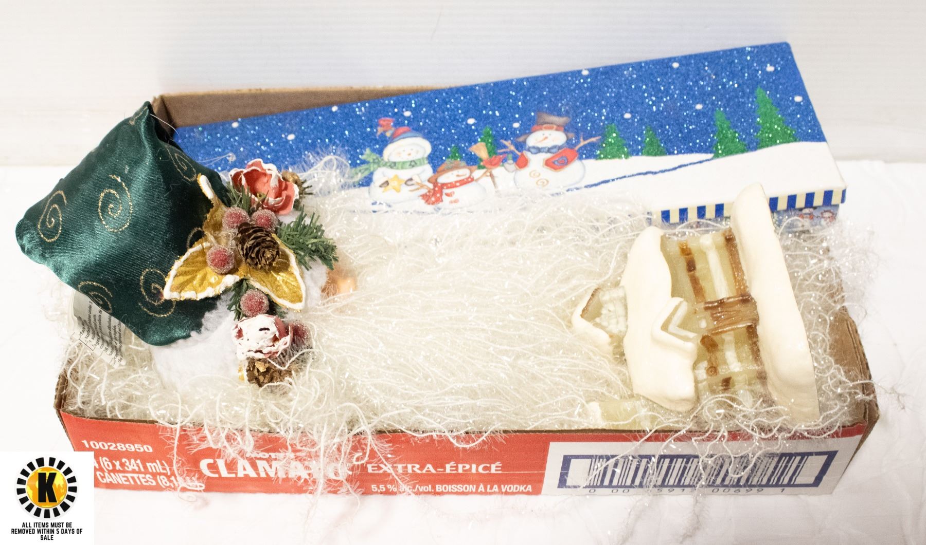 C/W CHRISTMAS DECORATED BOX AND CABIN CANDLE