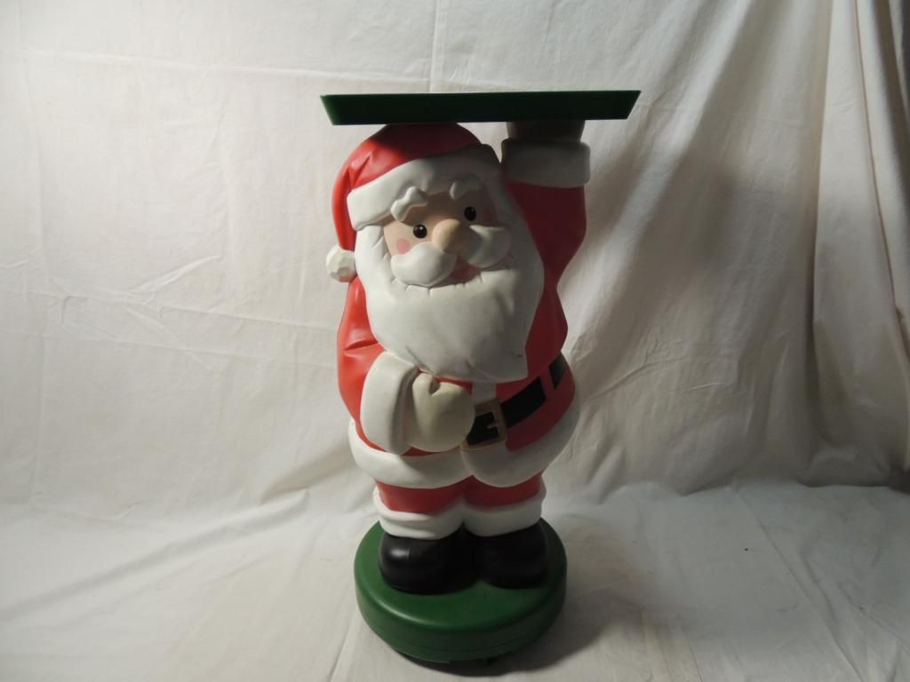 MOVING STANDING SERVING TRAY. MISSING REMOTE. APROX 22" TALL. SANTA STATUE WITH TRAY. AS SHOWN. SEE PHOTO FOR MORE DETAILS.