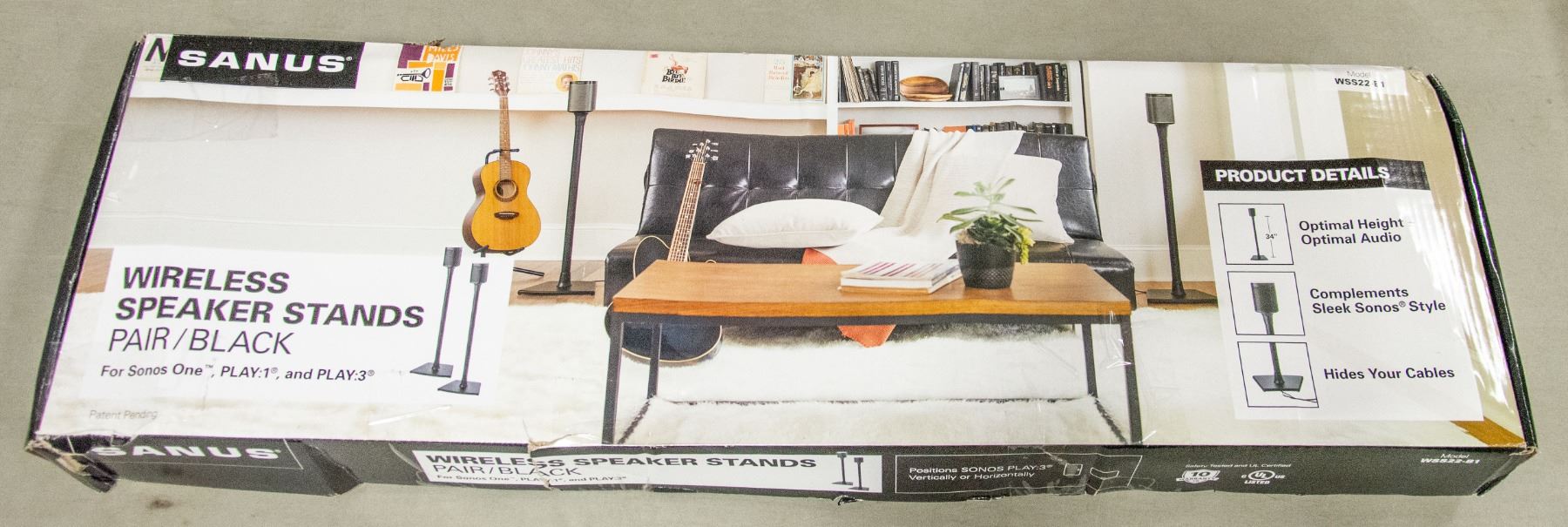 SANUS PAIR OF WIRELESS BLACK SPEAKER STANDS IN BOX