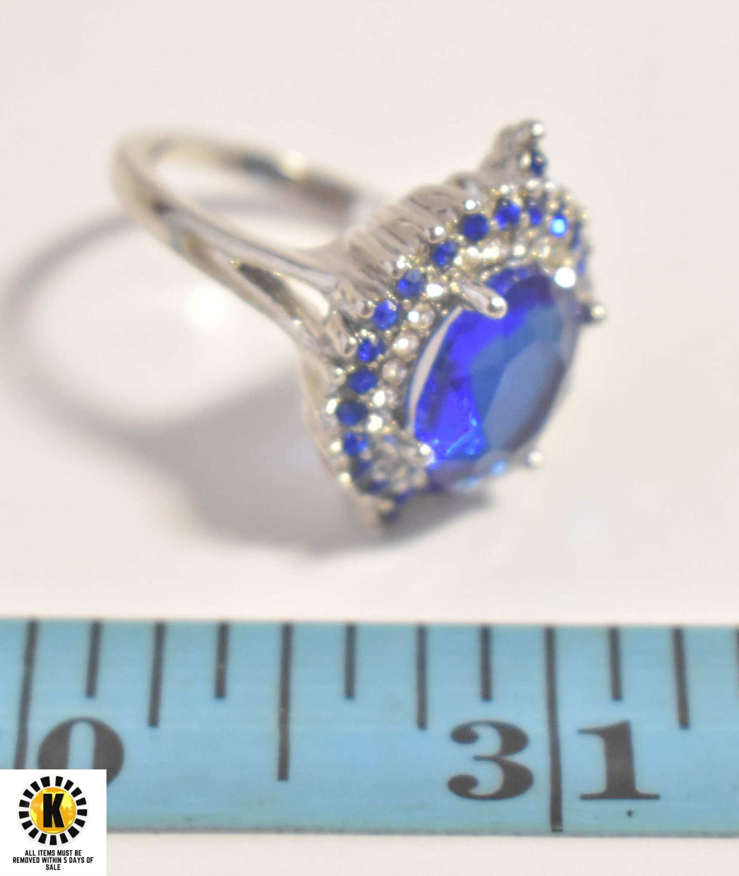 CZ DOUBLE HALO RING, SIZE 8, STAMPED 925. JEWELLERY