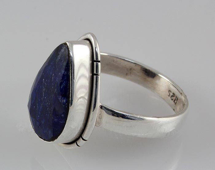 15X10MM PEAR SHAPE SAPPHIRE CORRUNDUM BEZEL TYPE SILVER RING; SIZE 7