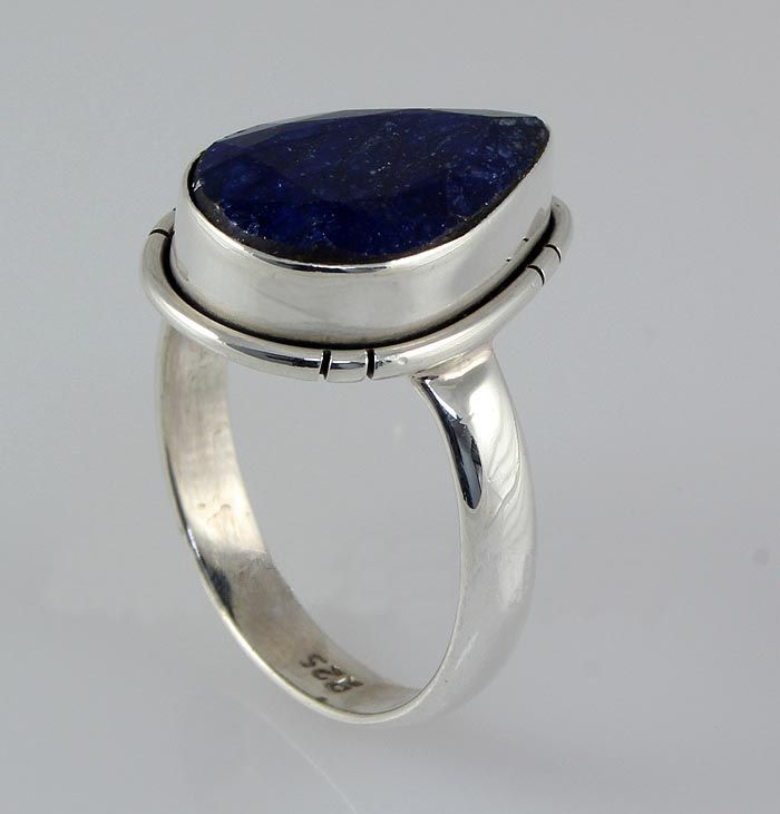 15X10MM PEAR SHAPE SAPPHIRE CORRUNDUM BEZEL TYPE SILVER RING; SIZE 7