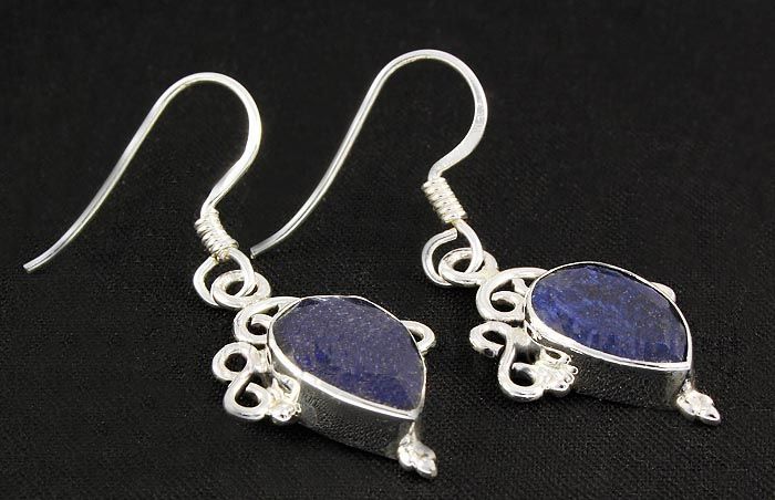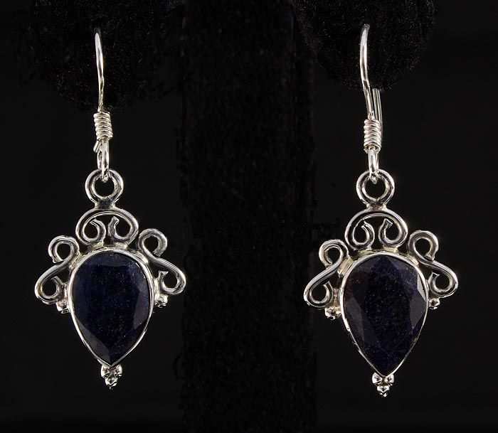 SAPPHIRE CORRUNDUM 20.85CTW SILVER HOOK EARRING **|**|** STERLING SILVER PEAR EARRING WITH 12X8MM APPROX SAPPHIRE CORRUNDUM GEMSTONE ; MSRP: $100