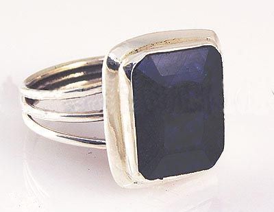SAPPHIRE CORRUNDUM 24.56CTW BEZEL SILVER RING **|**|** STERLING SILVER EMERALD SHAPE RING WITH 13X10MM APPROX SAPPHIRE CORRUNDUM GEMSTONE ; MSRP: $100