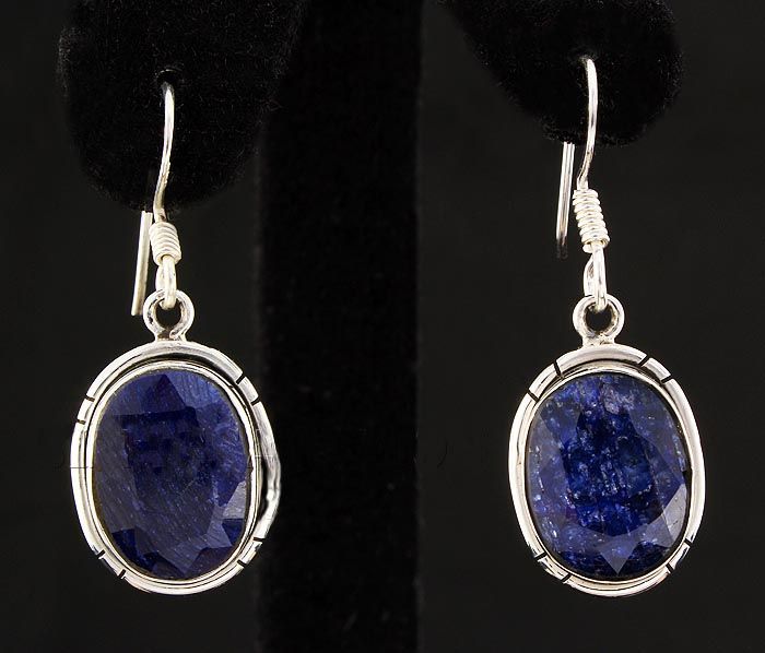 SAPPHIRE CORRUNDUM 25.63CTW SILVER HOOK EARRING **|**|** 14X11MM OVAL SHAPE SAPPHIRE CORRUNDUM BEZEL TYPE SILVER HOOK EARRING ; MSRP: $300