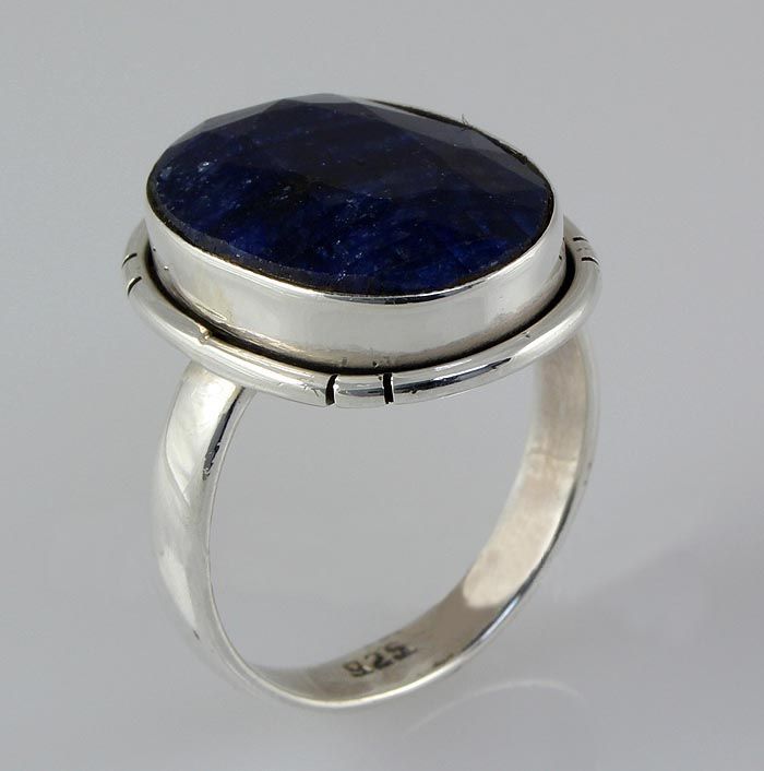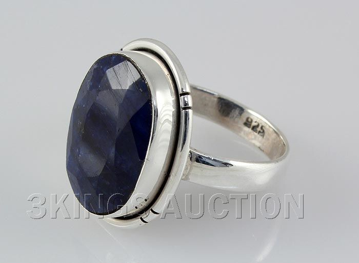 17X13MM OVAL SHAPE SAPPHIRE CORRUNDUM BEZEL TYPE SILVER RING; SIZE 7