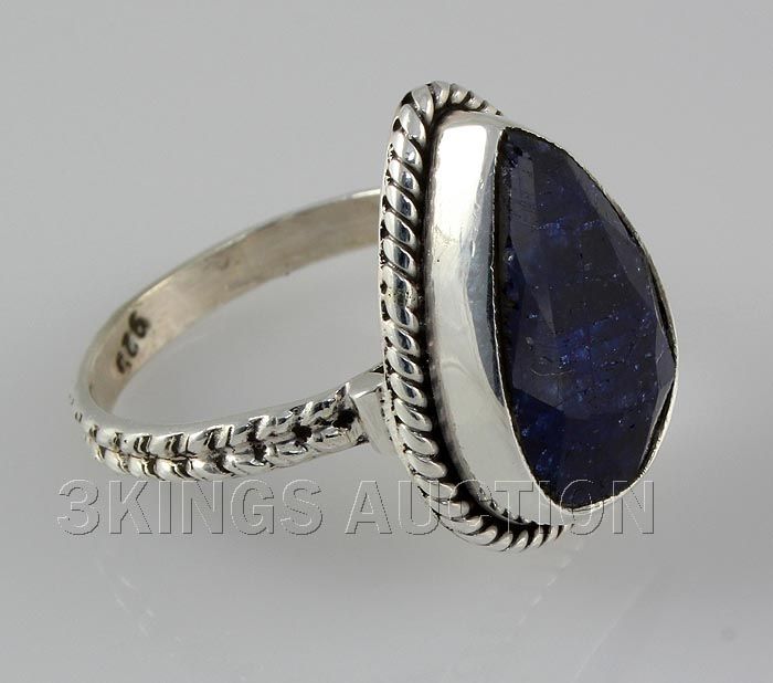 SAPPHIRE CORRUNDUM 26.54CTW SILVER RING **|**|** 17X12MM PEAR SHAPE SAPPHIRE CORRUNDUM ANTIQUE DESIGN SILVER RING; SIZE 8 ; MSRP: $100