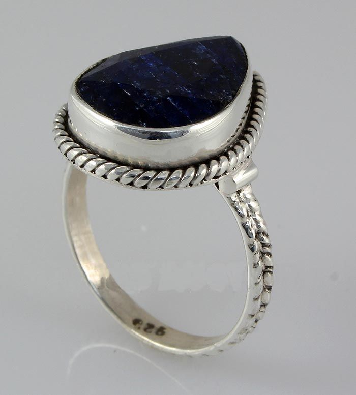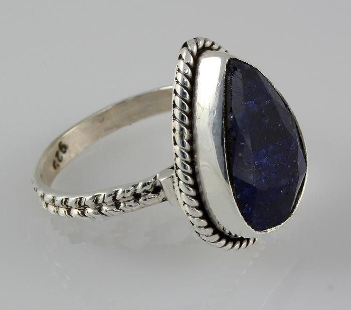 17X12MM PEAR SHAPE SAPPHIRE CORRUNDUM ANTIQUE DESIGN SILVER RING; SIZE 8