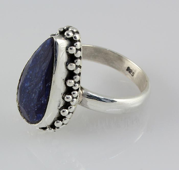 17X10MM PEAR SHAPE SAPPHIRE CORRUNDUM FLOWER DESIGN SILVER RING; SIZE 5.5