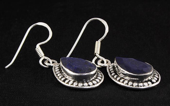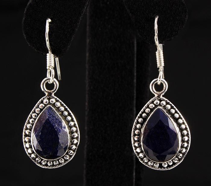 SAPPHIRE CORRUNDUM 26.92CTW SILVER HOOK EARRING **|**|** STERLING SILVER PEAR EARRING WITH 12X8MM APPROX SAPPHIRE CORRUNDUM GEMSTONE ; MSRP: $100