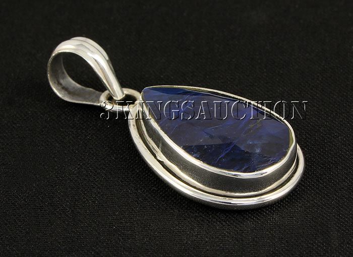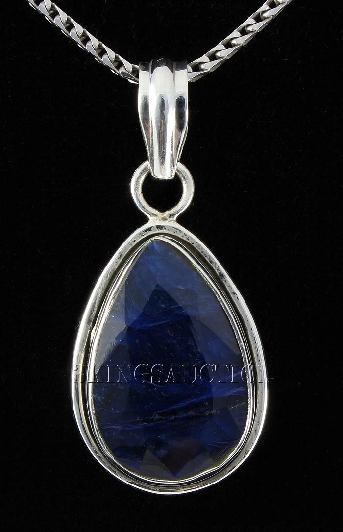 SAPPHIRE CORRUNDUM 28.10CTW SILVER PENDANT **|**|** 20X14MM PEAR SHAPE SAPPHIRE CORRUNDUM BEZEL TYPE SILVER PENDANT ; MSRP: $300