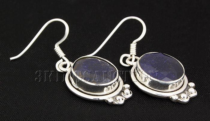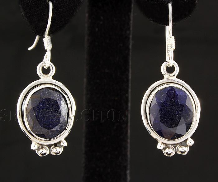 SAPPHIRE CORRUNDUM 28.30CTW MINI SILVER EARRING **|**|** 11X9MM CUTE OVAL SHAPE SAPPHIRE CORRUNDUM BEZEL TYPE SILVER HOOK EARRING ; MSRP: $300