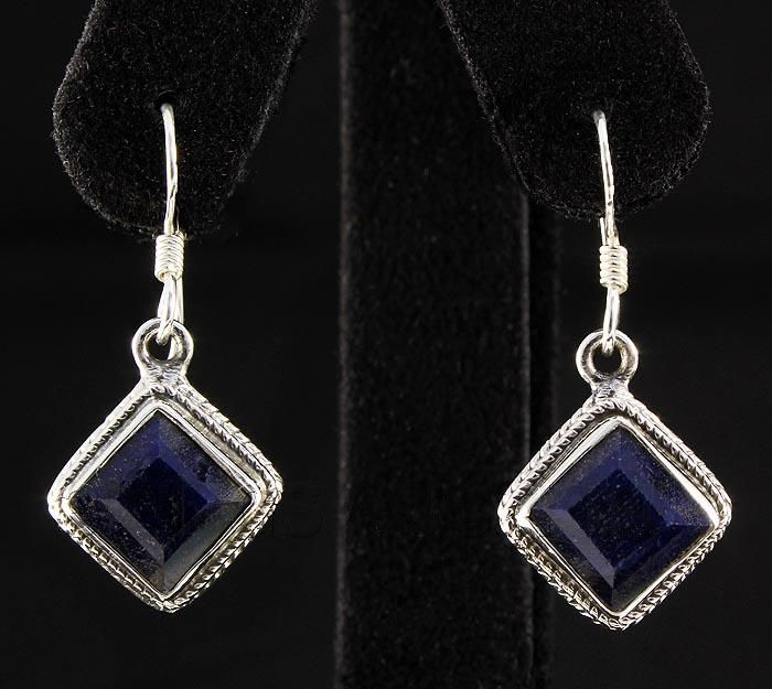 SAPPHIRE CORRUNDUM 29.06CTW SILVER HOOK EARRING **|**|** STERLING SILVER SQUARE EARRING WITH 8MM APPROX SAPPHIRE CORRUNDUM GEMSTONE ; MSRP: $100