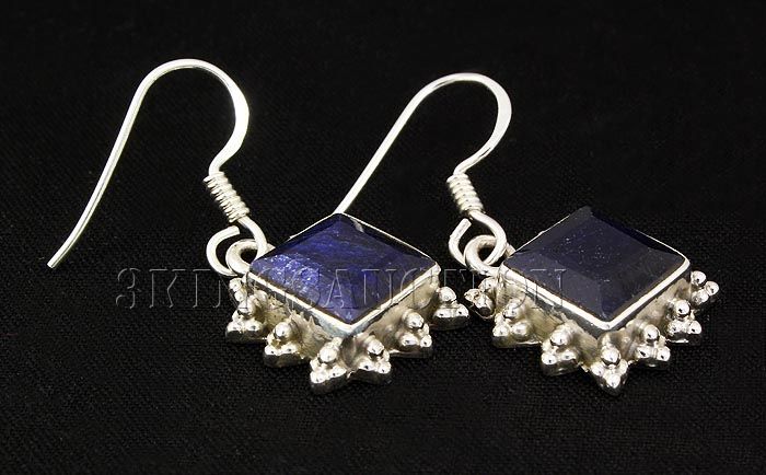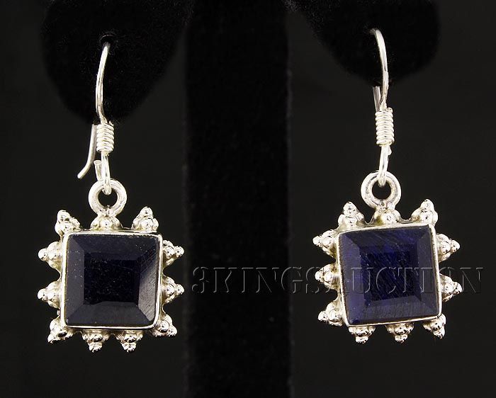 SAPPHIRE CORRUNDUM 30.02CTW SILVER HOOK EARRING **|**|** 10X10MM SQUARE SHAPE SAPPHIRE CORRUNDUM STERLING SILVER HOOK EARRING ; MSRP: $300
