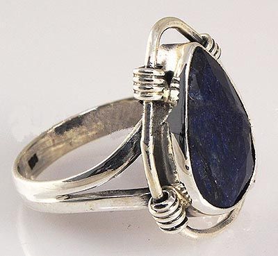 SAPPHIRE CORRUNDUM 30.67CTW UNIQUE DESIGN .925 RING **|**|** STERLING SILVER PEAR RING WITH 16X11MM APPROX SAPPHIRE CORRUNDUM GEMSTONE ; MSRP: $100