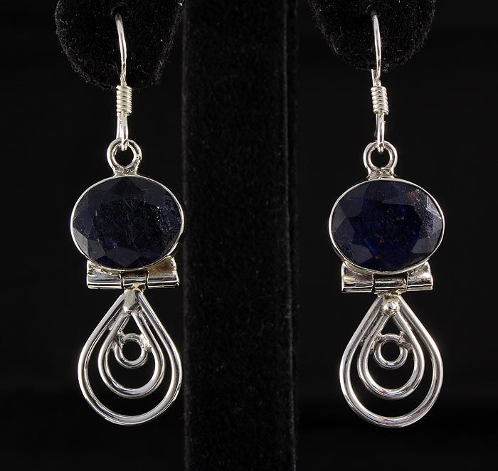SAPPHIRE CORRUNDUM 32.25CTW SILVER HOOK EARRING **|**|** STERLING SILVER OVAL EARRING WITH 12X10MM APPROX SAPPHIRE CORRUNDUM GEMSTONE ; MSRP: $100