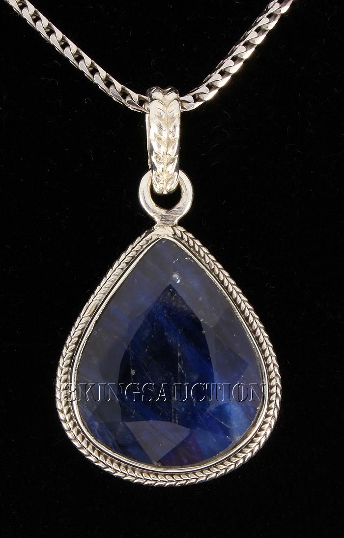 SAPPHIRE CORRUNDUM 32.60CTW SILVER PENDANT **|**|** 20X17MM PEAR SHAPE SAPPHIRE CORRUNDUM STERLING SILVER PENDANT ; MSRP: $400