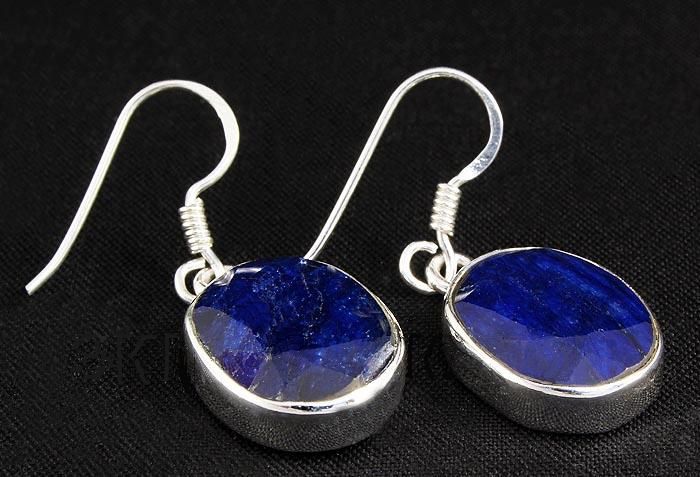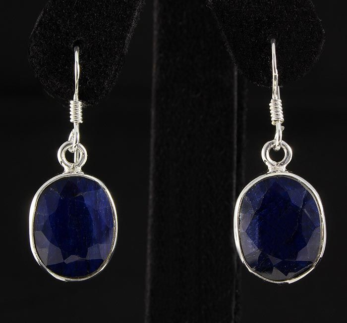 SAPPHIRE CORRUNDUM 33.04CTW SILVER HOOK EARRING **|**|** STERLING SILVER OVAL BEZEL EARRING WITH 14X11MM APPROX SAPPHIRE CORRUNDUM GEMSTONE ; MSRP: $100