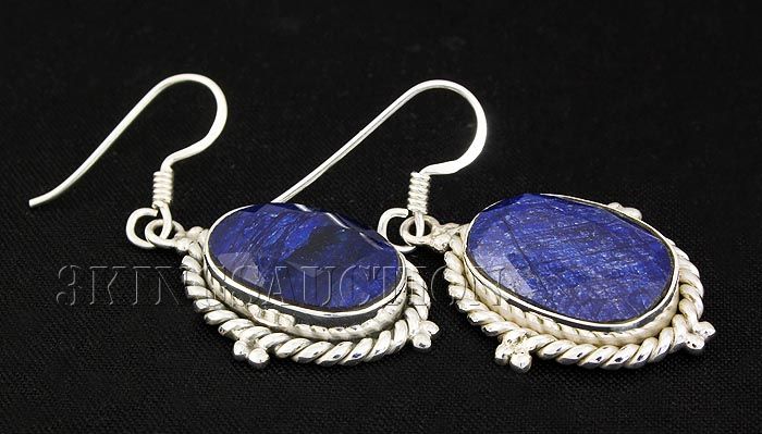 SAPPHIRE CORRUNDUM 44.01CTW SILVER HOOK EARRING **|**|** 15X12MM OVAL SHAPE SAPPHIRE CORRUNDUM SILVER HOOK EARRING ; MSRP: $500