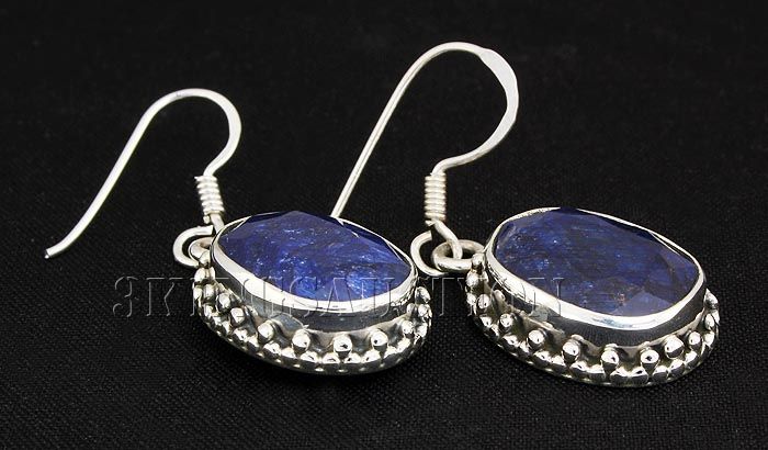 SAPPHIRE CORRUNDUM 50.58CTW SILVER HOOK EARRING **|**|** 16X12MM OVAL SHAPE SAPPHIRE CORRUNDUM STERLING SILVER HOOK EARRING ; MSRP: $600
