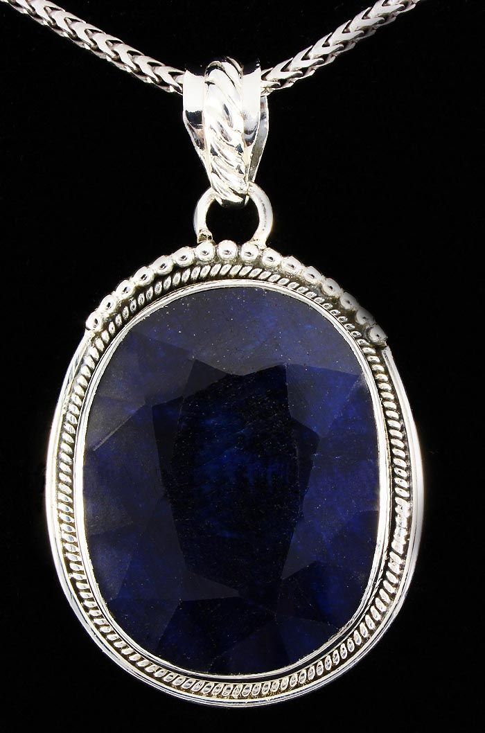 SAPPHIRE CORRUNDUM 59.67CTW SILVER PENDANT **|**|** STERLING SILVER OVAL PENDANT WITH 27X21MM APPROX SAPPHIRE CORRUNDUM GEMSTONE ; MSRP: $300