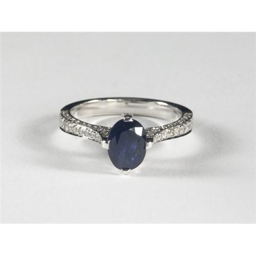 SAPPHIRE, DIAMOND AND 14K WHITE GOLD LADY'S RING