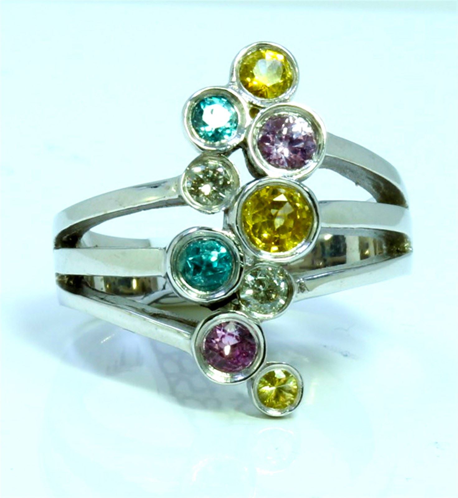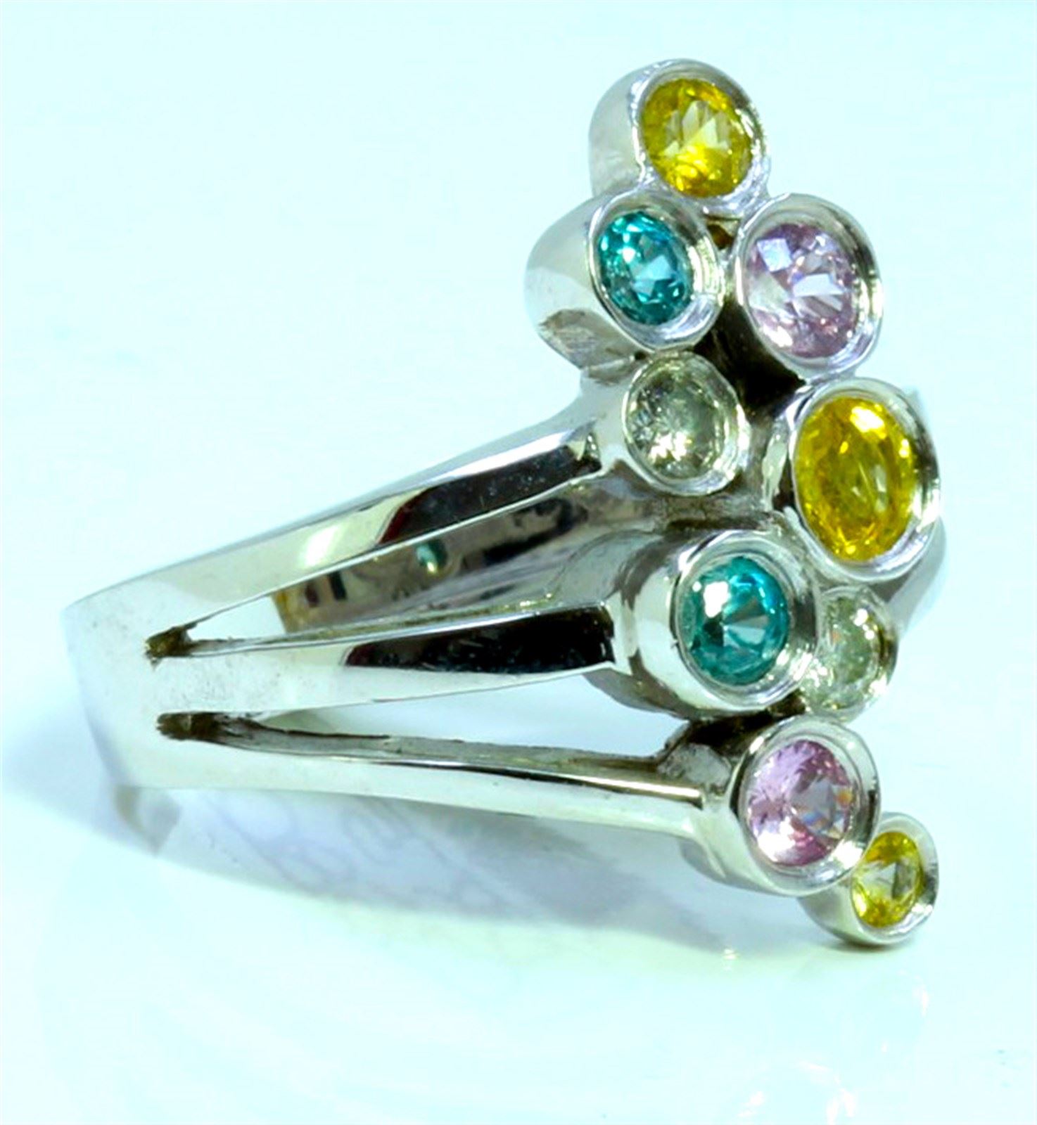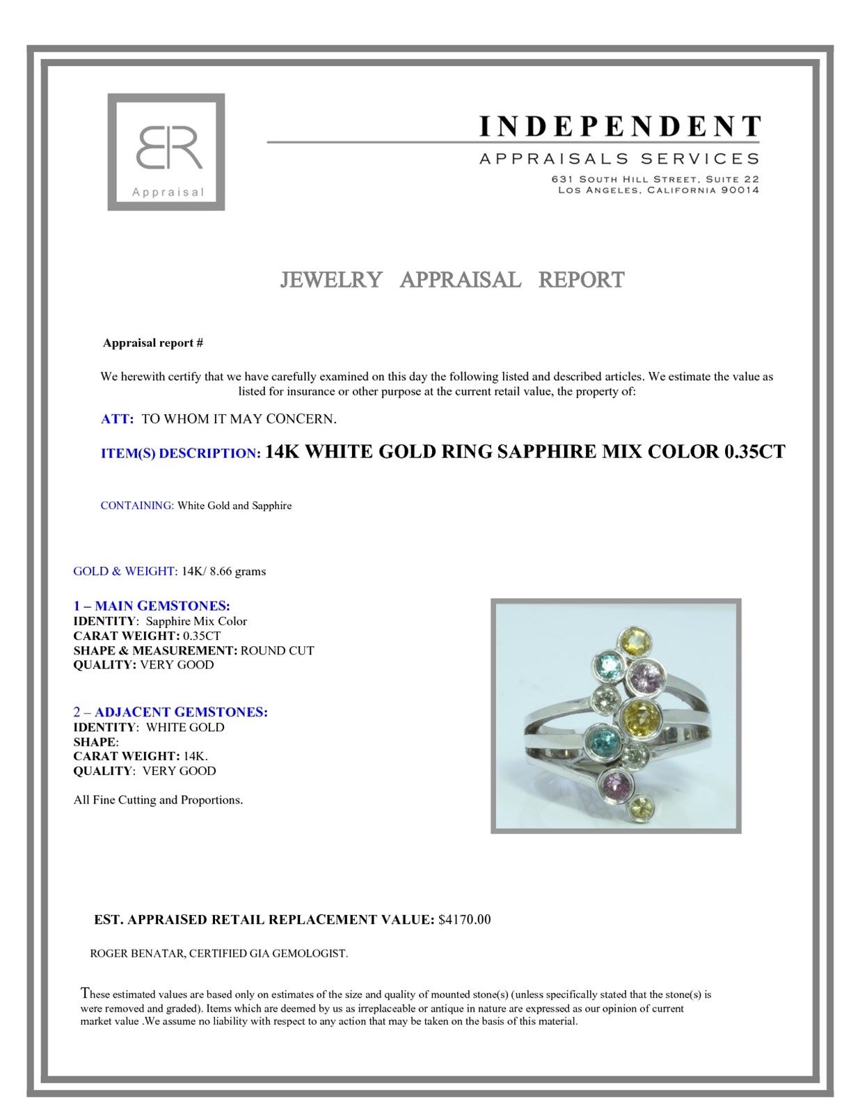14K WHITE GOLD RING 8.66GRAM SAPPHIRE MIX COLOR 0.35CT