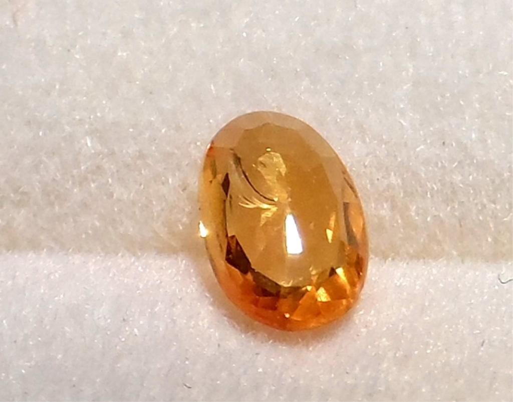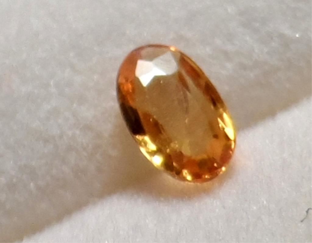 SAPPHIRE, NATURAL, ORANGE, HEAT ONLY, 0.20 CARATS, 4.82X3.10MM, SONGEA, ERV $65 GEMSTONE, AS SHOWN SEE PHOTO FOR MORE DETAILS.