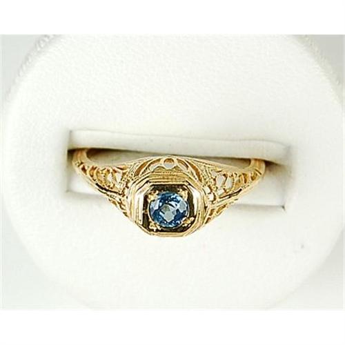 This Vintage Style ring from my collection is an Authentic & Accurate copy of a ring from the 1930's - and this one is in Mint condition! It is a 14k yellow gold ring with a Genuine Sapphire = .30 Carats! It is surrounded by beautiful filigree work. This Sapphire ring is often worn as an 'Antique Style Sapphire Engagement ring'. It is a size 6 3/4 and I can easily resize it for you.