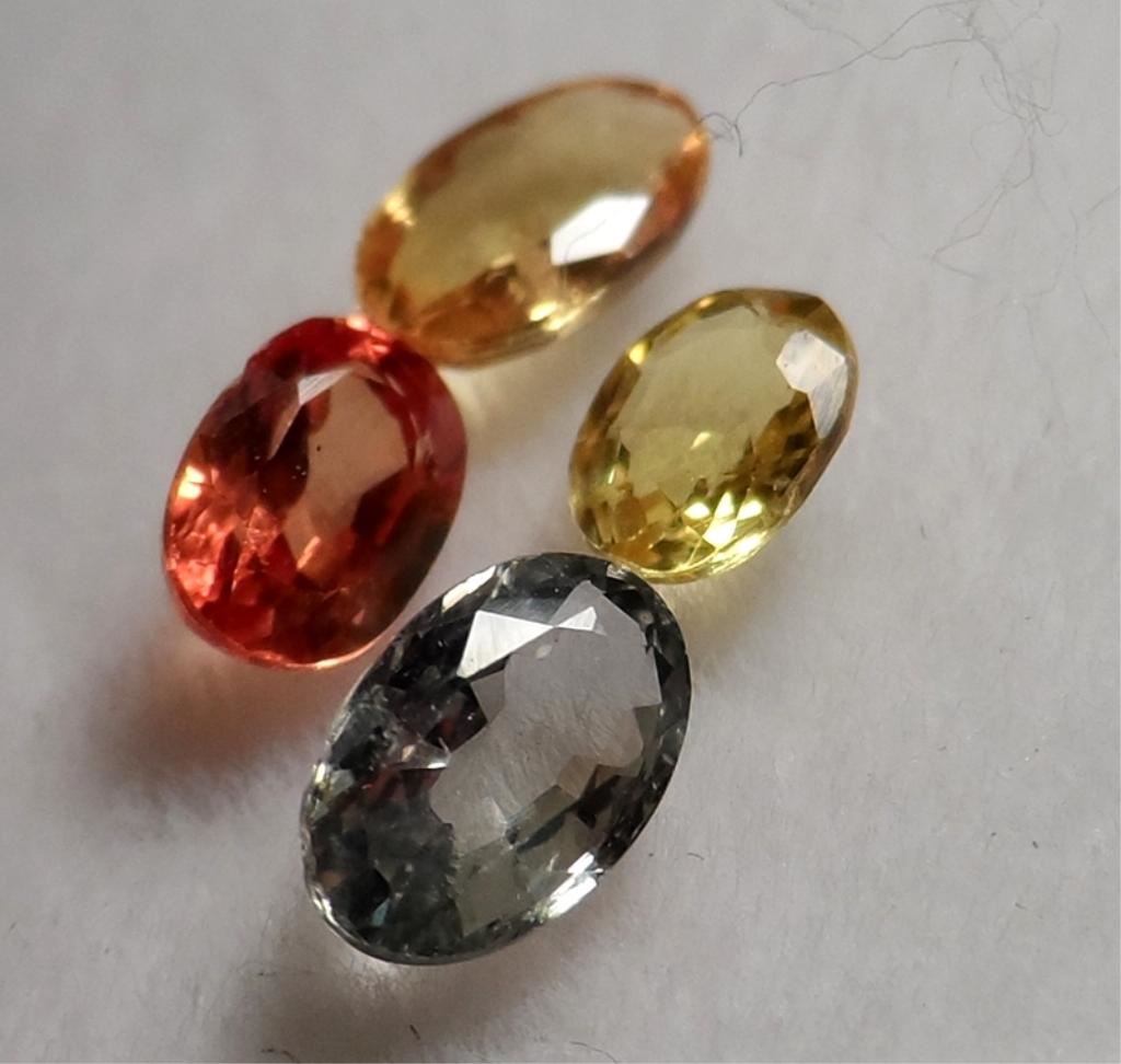 SAPPHIRES NATURAL HEAT ONLY, 4PCS, MULTICOLOR, 0.85CTW, 4X3MM +/- SRI LANKA ERV $200 GEMSTONES AS SHOWN SEE PHOTO FOR MORE DETAILS.