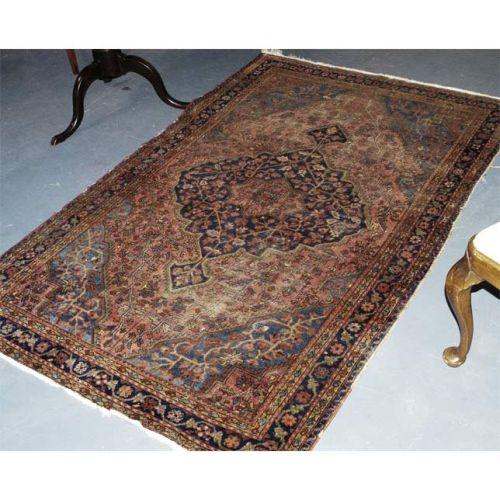 SAROUK CARPET 4'3"x6'7" circa 1900 CONDITION REPORT: low pile, selvage damage.