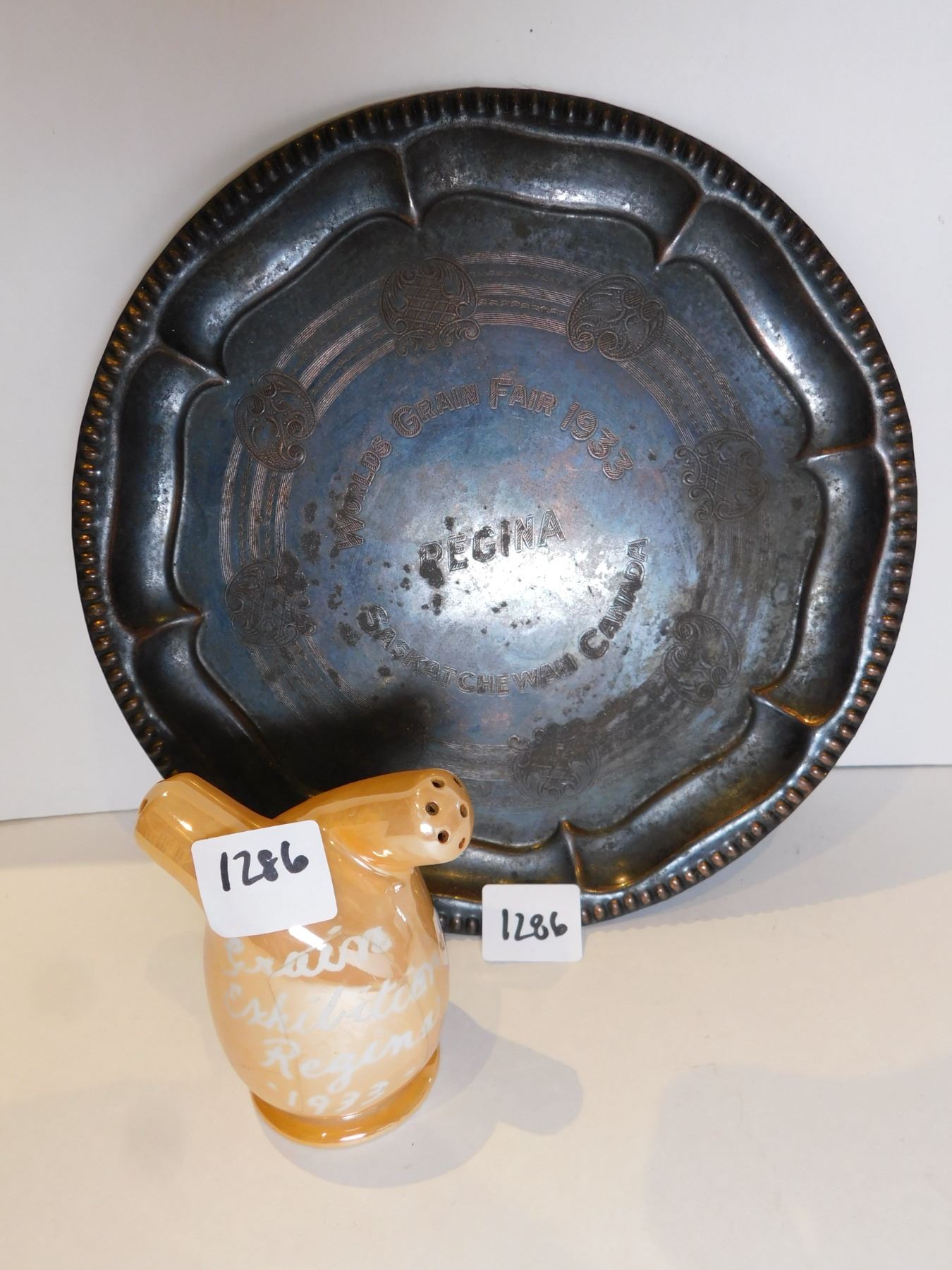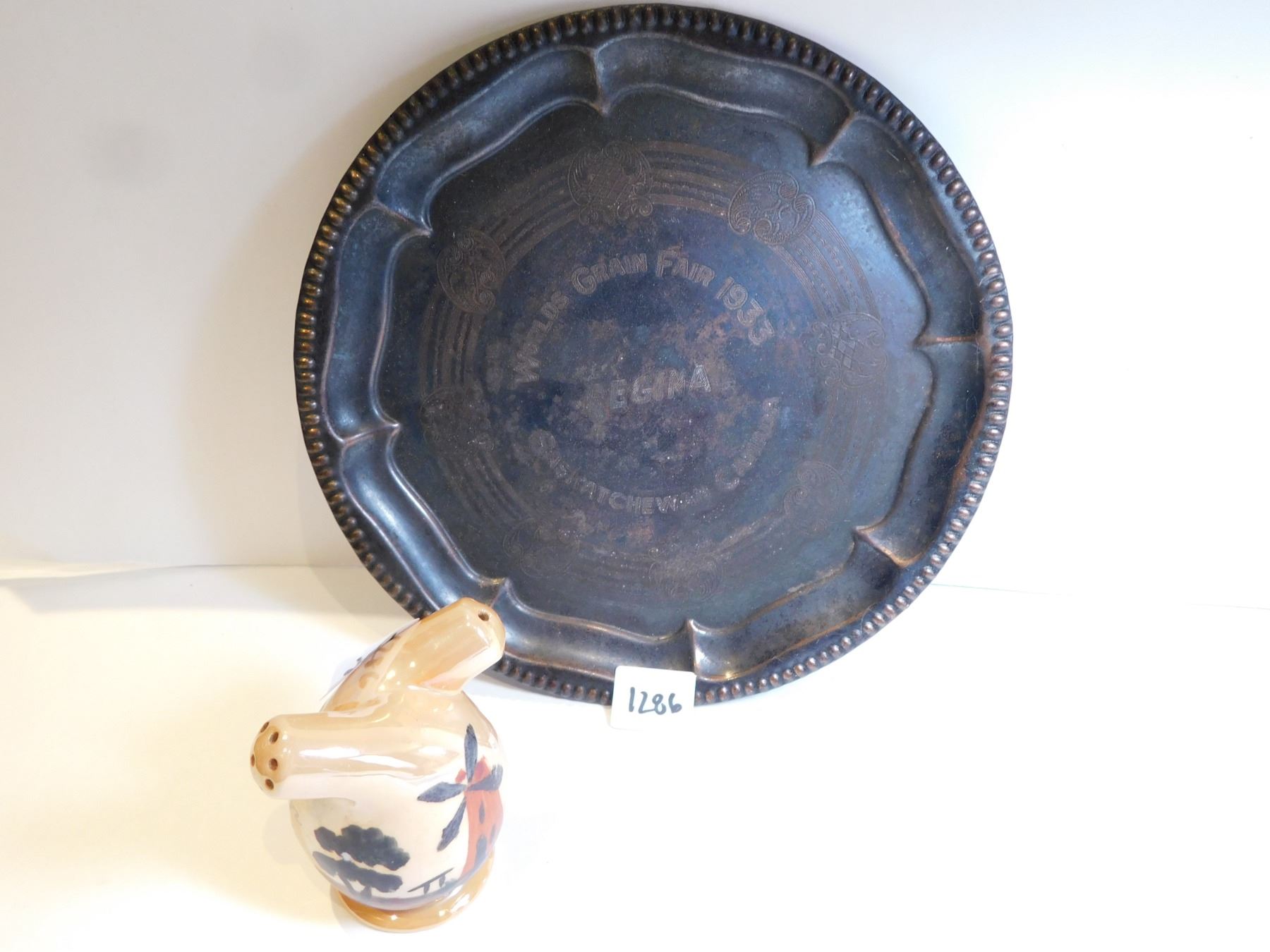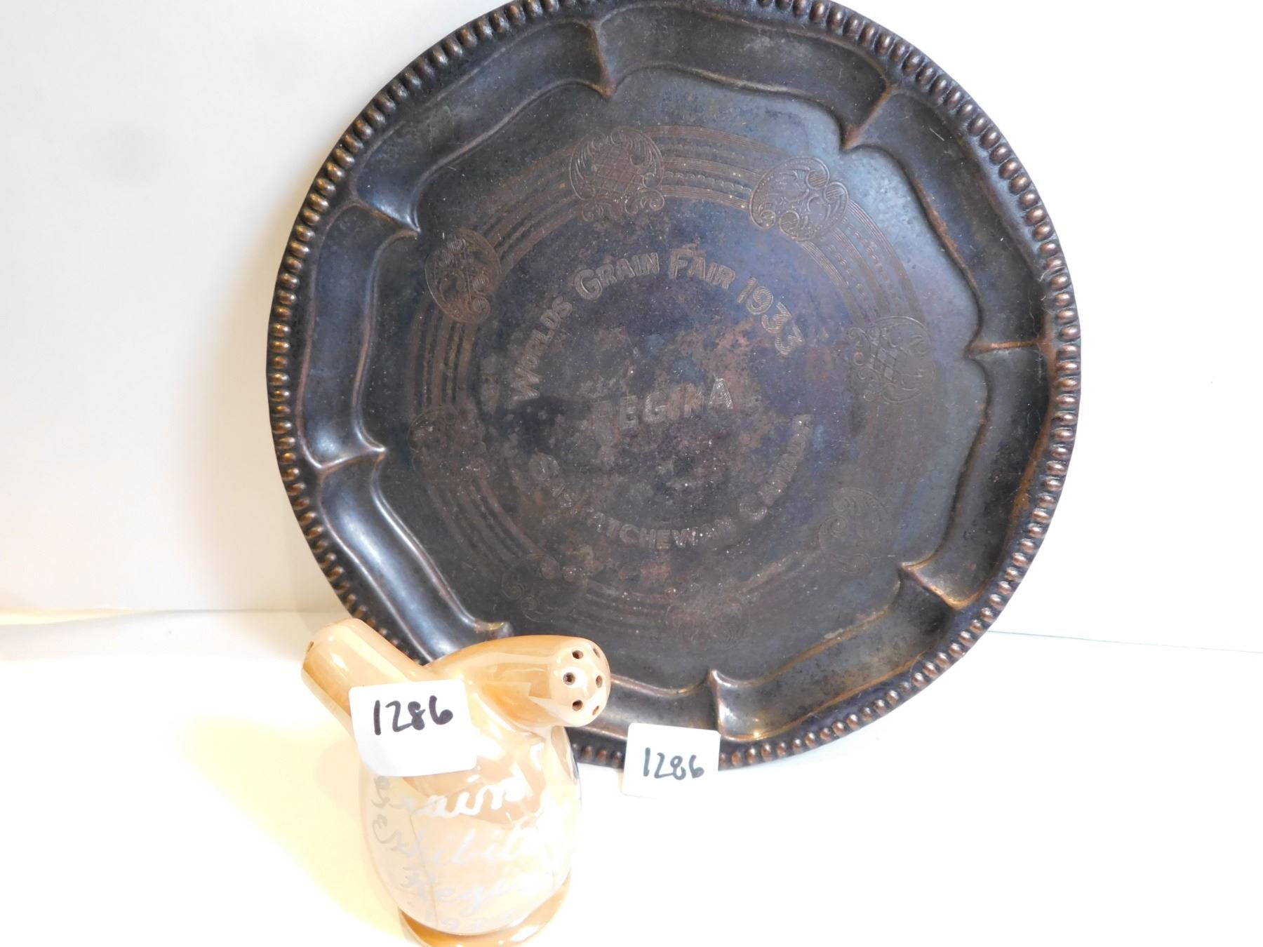 SASKATCHEWAN GRAIN EXHIBITION 1933 SALT PEPPER AND A 8” PLATTER, REGINA