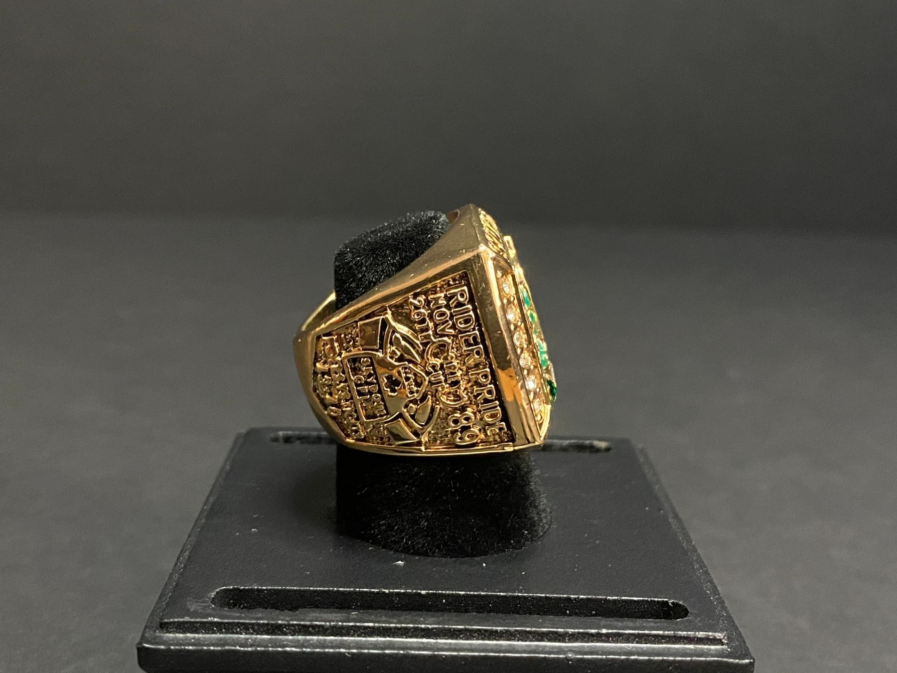 SASKATCHEWAN ROUGHRIDERS 1989 CFL GREY CUP CHAMPIONSHIP REPLICA RING "RIDGEWAY"