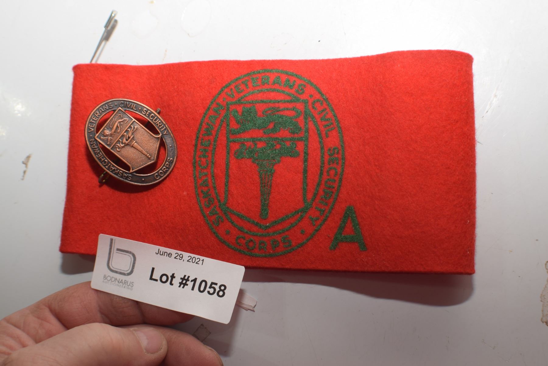 SASKATCHEWAN VETERANS CIVIL CORPS CAP BADGE AND ARM BAND