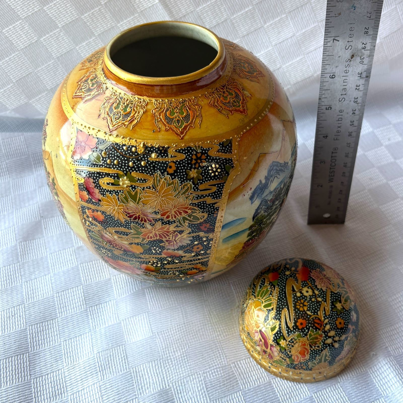 Highly detailed, reminiscent of Japanese Satsuma porcelain