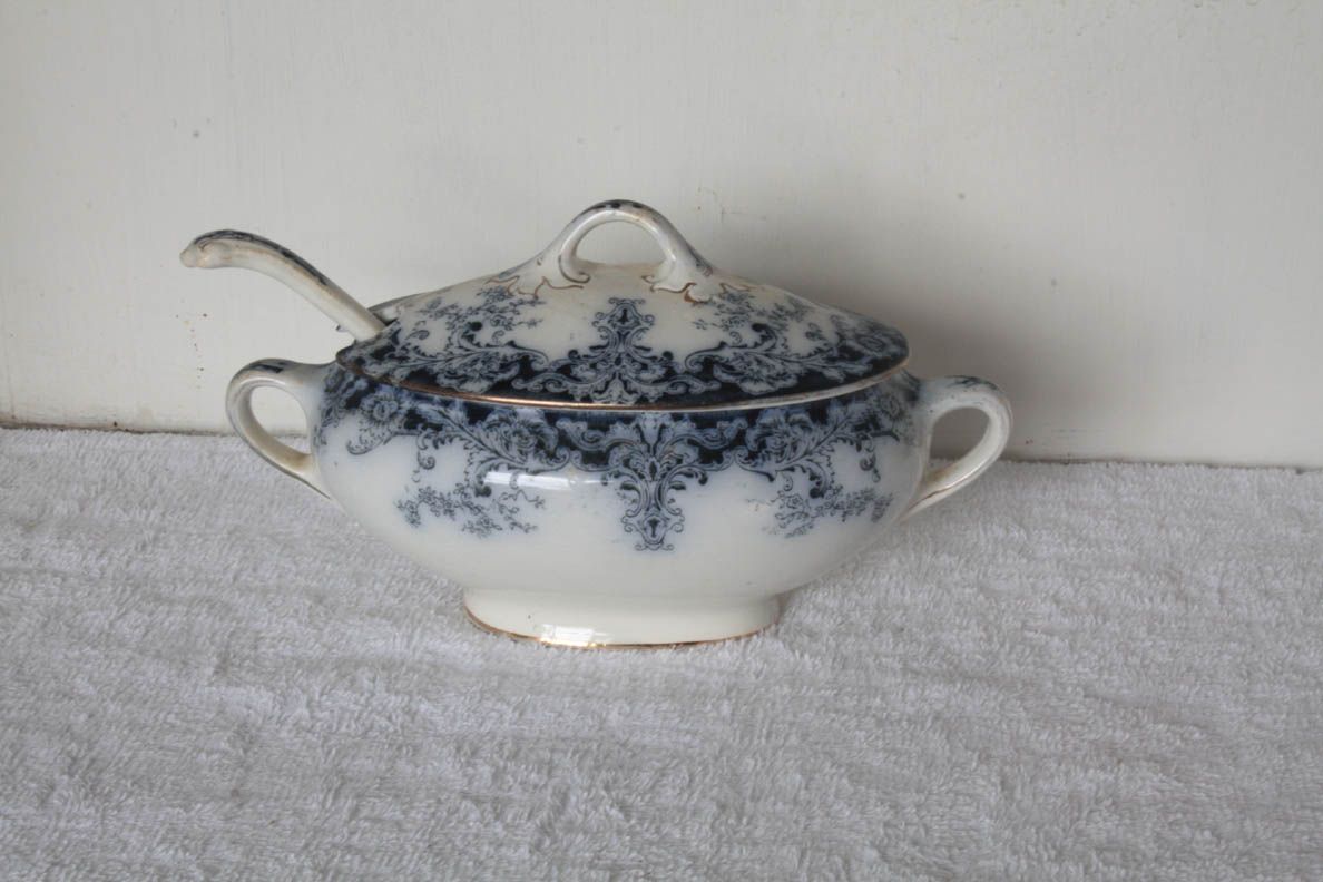 SAUCE BOAT (BLUE & WHITE) C/W LADLE