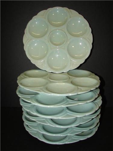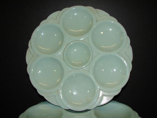 SET OF 7 SAUGGEMINES OYSTER PLATES. Marked on bottom. 9.5” Dia.