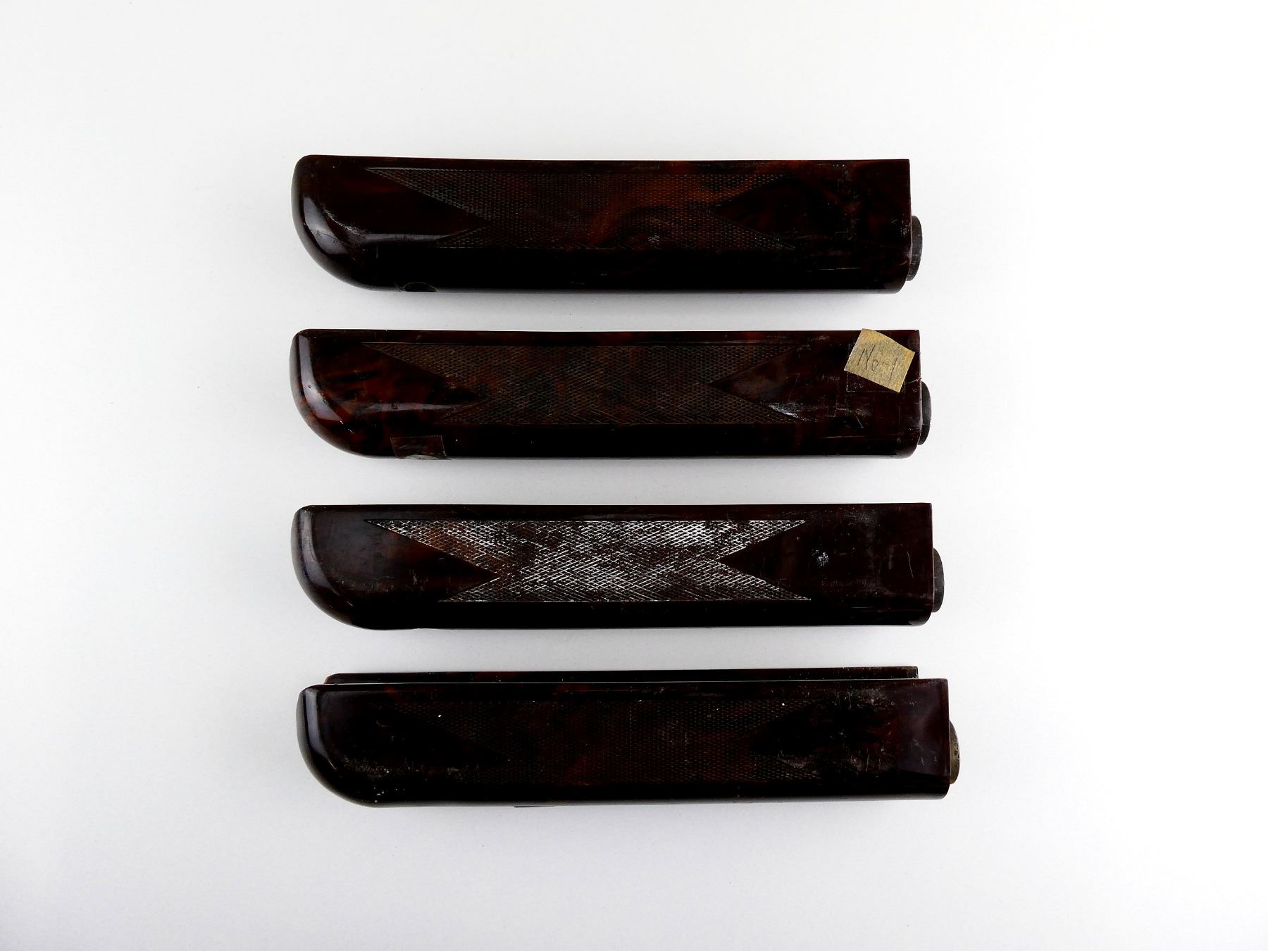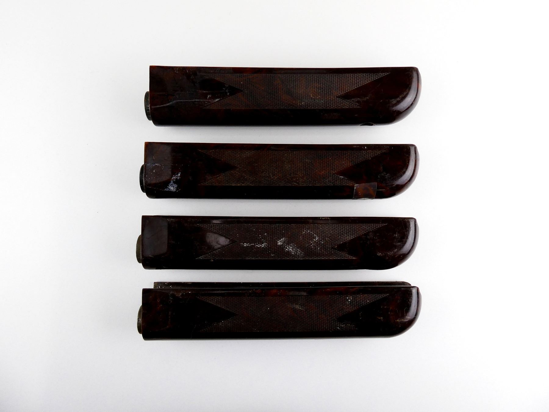 LOT INCLUDES; (4) BROWN POLYMER FORENDS, CHECKERED, MAY HAVE SMALL CRACKS & CHIPS, OAL APPROX. 9.75". MAY REQUIRE FITTING. SEE PHOTOS.