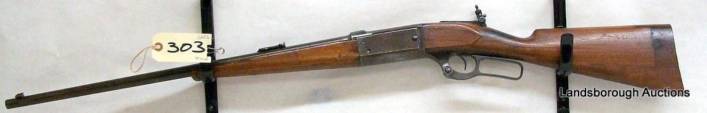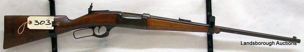 NON-RESTRICTED, LEVER ACTION, REBARRELLED TO 32 SPL, 24" BARREL, SN 97873. WOOD BUTT LENGTHENED, CHIPPED FOREARM, BLUING IS BROWN, BORE HAS PITTING. NO BUTT PLATE. LYMAN REAR PEEP.