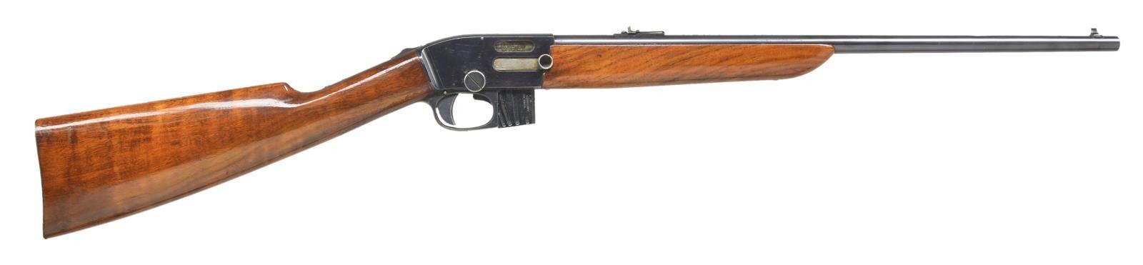 Cal. 22 LR. S# 2208. Bbl. 20" w/ sporting sights. Blue finish. Walnut stock set. MAGS: 1 - 10 rd. CONDITION: good plus blue w/ peppery oxidation, scratches & handling marks. Good wood finish w/ handling marks. Buttplate has fair blue w/ peppery oxidation throughout. Very good bore. (22-2791/MD). CURIO. $500-750.
