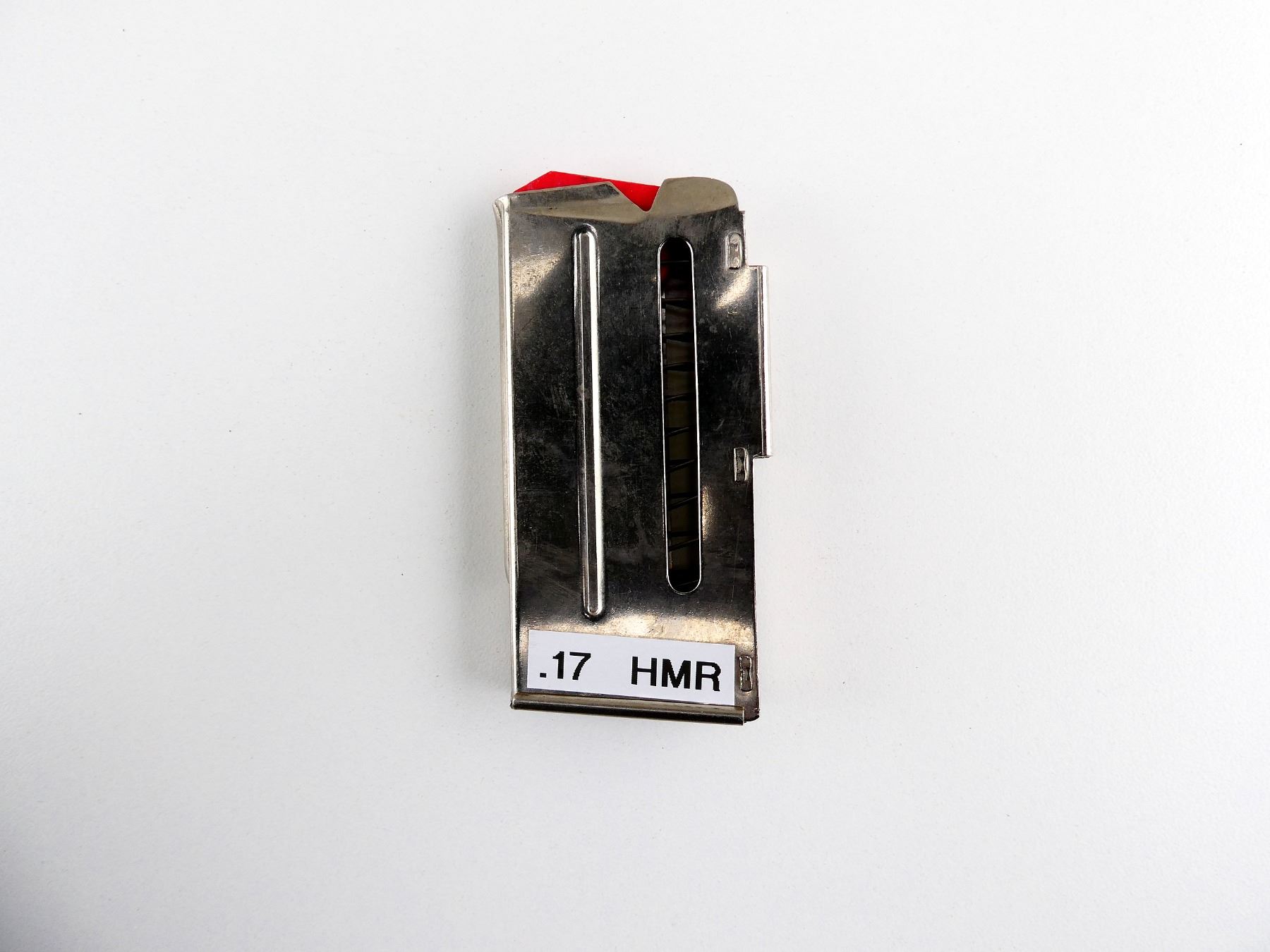(1) .17 HMR MAG, 10 RNDS, STAINLESS CONSTRUCTION, RED POLYMER FOLLOWER. SEE PHOTOS. PAL REQUIRED.