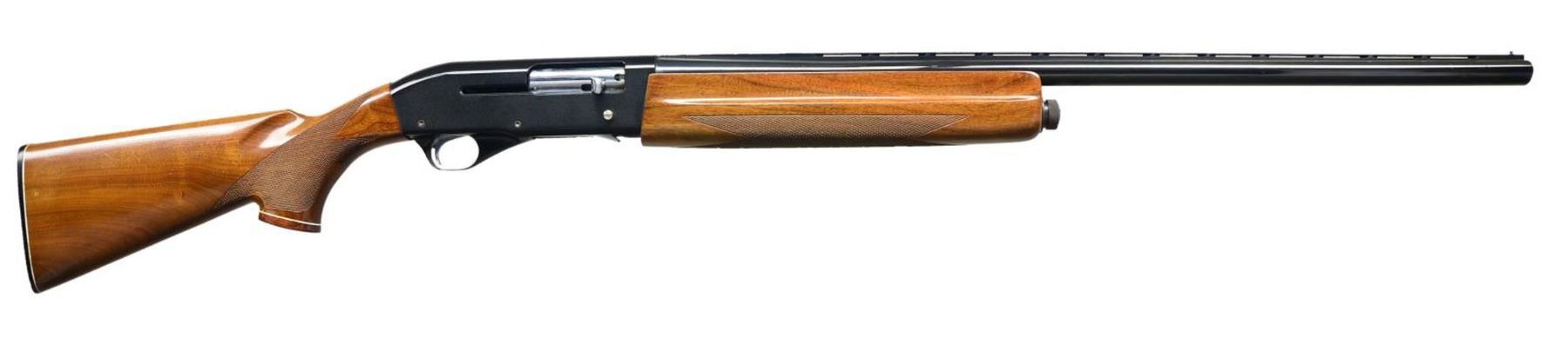 Cal. 12Ga. S# SA10766. Bbl.28". Self loading, tube-fed with modified choke, vent rib barrel. Brass front bead. Bright blue finish on barrel with 2-tone matte/gloss black receiver. Checkered hardwood shoulder stock & forend. Diamond inlay grip cap w/ white spacer. Factory checkered buttplate. CONDITION: finish coverage is complete & consistent, bearing only a few scratches on the receiver. Wood bears a few impressions. Bore is bright. Fire control mechanism appears to function correctly when cycled by hand. (22-4591/JZ). MODERN. $200-350.