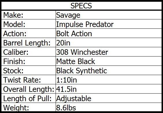IMPULSE Predator has the speed needed for effective predator hunting. The American made IMPULSE Predator combines legendary Savage accuracy with the lightning-fast speed of a straight-pull action to create a rifle capable of making follow-up shots. Nothing's better for hunting carnivores that travel in packs. For long-range accuracy and quick shots when the moment is right, IMPULSE Predator delivers.