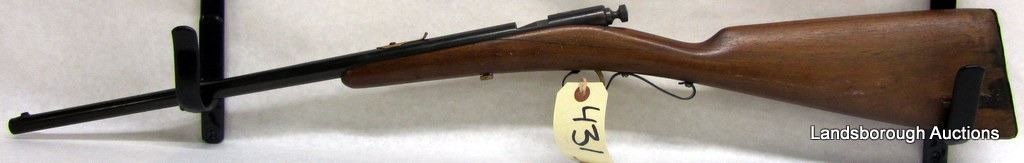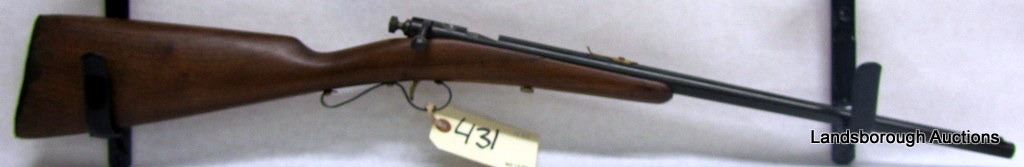 NON RESTRICTED BOLT ACTION. 22 S L LR, 447MM BARREL, S/N 5904289. WOOD IS HAS SOME SCRATCHING, BLUING HAS WEAR, BORE IS VERY PITTED WITH LITTLE RIFLING. APPEARS TO HAVE PART MISSING IN TRIGGER- BOLT WILL NOT STAY IN