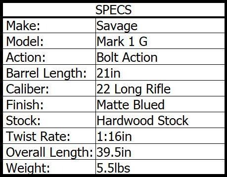 The Mark I-G is a reliable single-shot, bolt action rimfire. Features include used-adjustable Accutrigger technology. 21 inch carbon steel barrel, open sights and a high luster wooden stock. 1 round mag capacity
